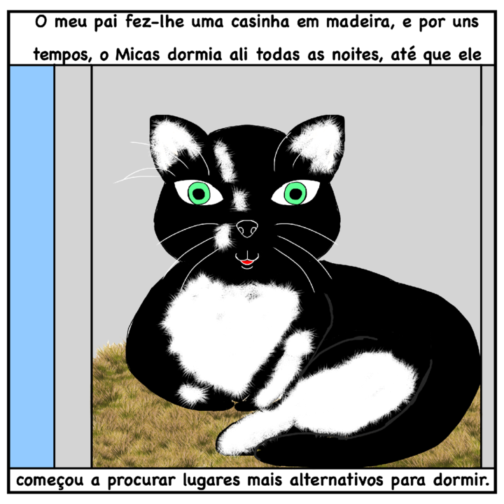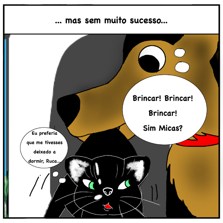 Apresento-vos o "Micas", um gato que apareceu cá por casa há alguns meses, na época era uma bolinha de pêlo pequenina e fofa (teria menos de três meses), não se sabe se foi abandonado nas proximidades ou se se perdeu (na verdade, nunca ninguém procurou por ele, e além disso, vivo numa zona onde se costuma abandonar animais, infelizmente), o que é certo, é que a nossa família o adoptou desde esse dia, inicialmente pensávamos que era uma gata, mas pouco tempo depois, vimos que afinal era macho. Os meus pais não tinham intenção de ter mais gatos, pois perdemos vários de maneira trágica (principalmente atropelados), e é sempre muito triste quando se perde um animal de estimação, mas o bichinho foi ficando, e hoje em dia ele praticamente já faz parte da familia, e verdade seja dita, acho que ele deve ter algum super pode oculto, pois como um gato consegue domar um pastor alemão que é praticamente do triplo do tamanho dele? É engraçado de ver o Ruca brincar com ele como se fosse outro cão, mas com cuidado para não magoar o Micas, excepto quando quer apanhar a cauda dele.